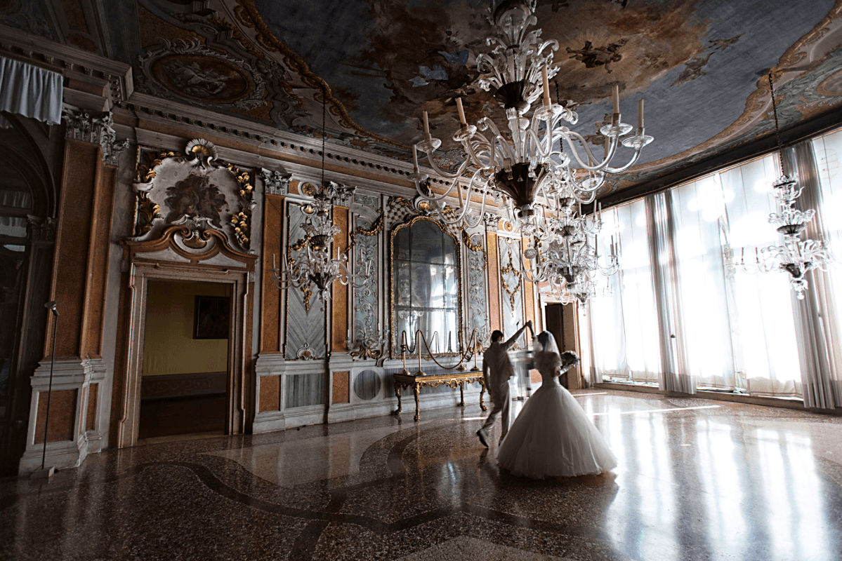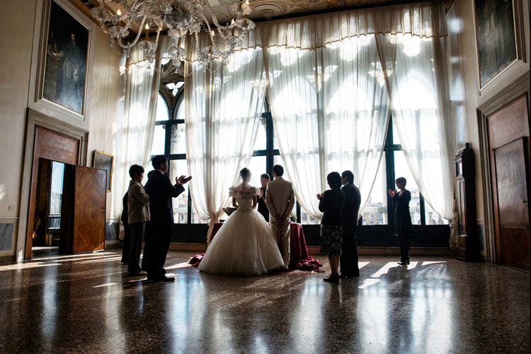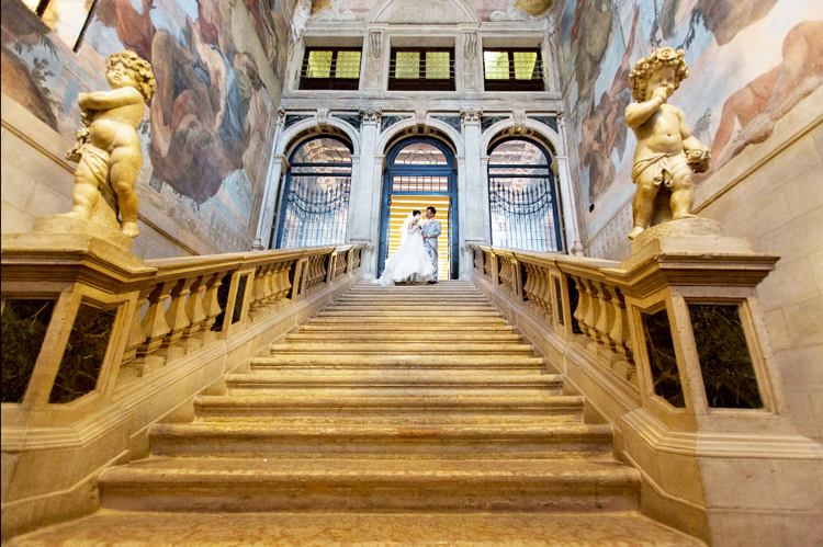ゴンドラに乗って式場の宮殿までお連れします。日本では体験できないヴェネチア・ウェディングはプリンセス気分で大切な思い出になります。